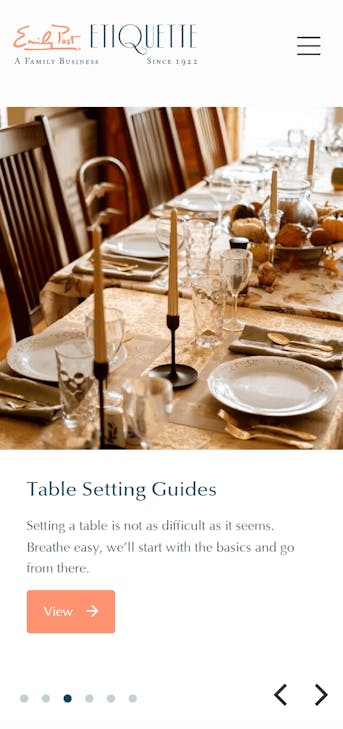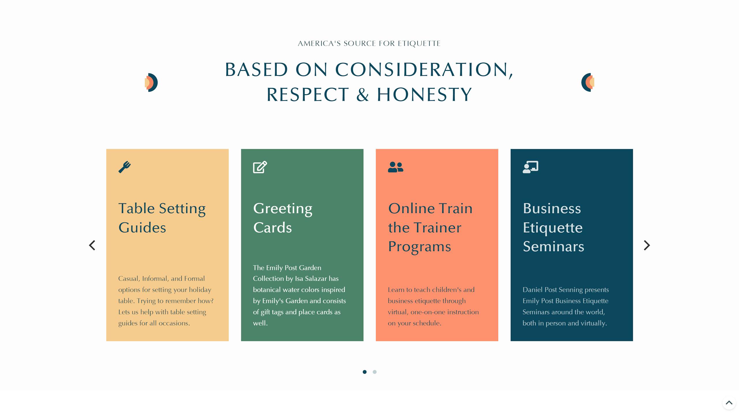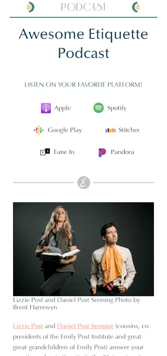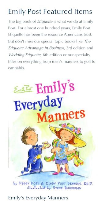 Emily Post is a fifth generation family business that promotes etiquette based on consideration, respect and honesty. Since 1922, they have been one of the most trusted sources for etiquette advice. From traditions of formal address, to mask wearing manners, they have been an innovator on the delivery and instruction of modern day etiquette.
